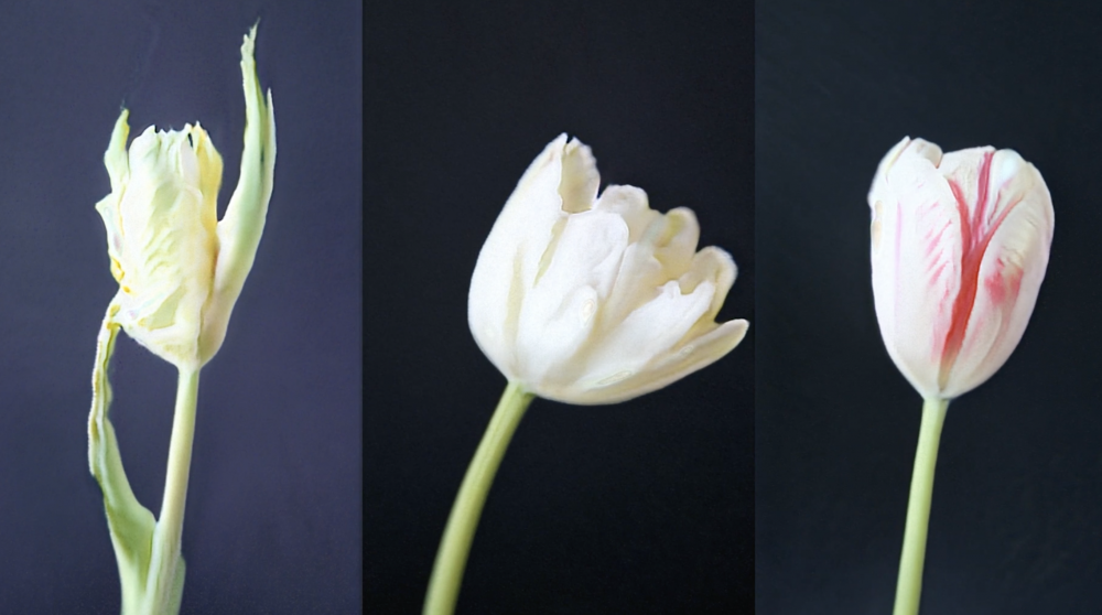 Tulips are at the main topic of Anna Ridler´s Mosaic Virus, which is now part of the exhibition Flowers Forever at Kunsthalle München. In her video work generated by an AI, Anna Ridler draws historical parallels from “tulip-mania” that swept across Netherlands/Europe in the 1630s to the speculation currently ongoing around crypto-currencies. The appearance of the blooming tulip is controlled by the bitcoin price.