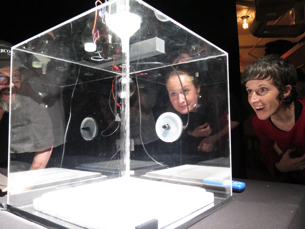 Verena Friedrich offered an overview of her recent works that bridge art historical and scientific concerns related to ephemerality and stability. Her presentation culminated in the unveiling of her soap bubble machine and the releasing of soap bubbles into a custom made display case designed to suspend the bubbles in mid-air and consequently prolong their lives. The Long Now serves as a companion to Friedrich's Vanitas Machine in which she intervened with the atmosphere surrounding a candle to make it burn longer.
