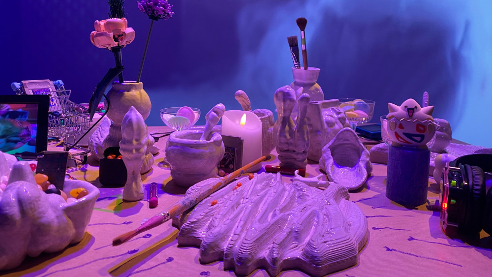 Be My Guest! by EMAP artists Anna Pompermaier, Cenk Güzelis and Valdemar Danry explores the spatial, cultural, and social relationships of design, new media technologies and AI, through one of the most common and oldest gathering rituals in our everyday lives – a communal dinner. The host of this dinner? AI. This way, Be My Guest! allows for discussions on the growing socio-cultural role of AI-models and their integration as a new kind of social species in our everyday scenarios.