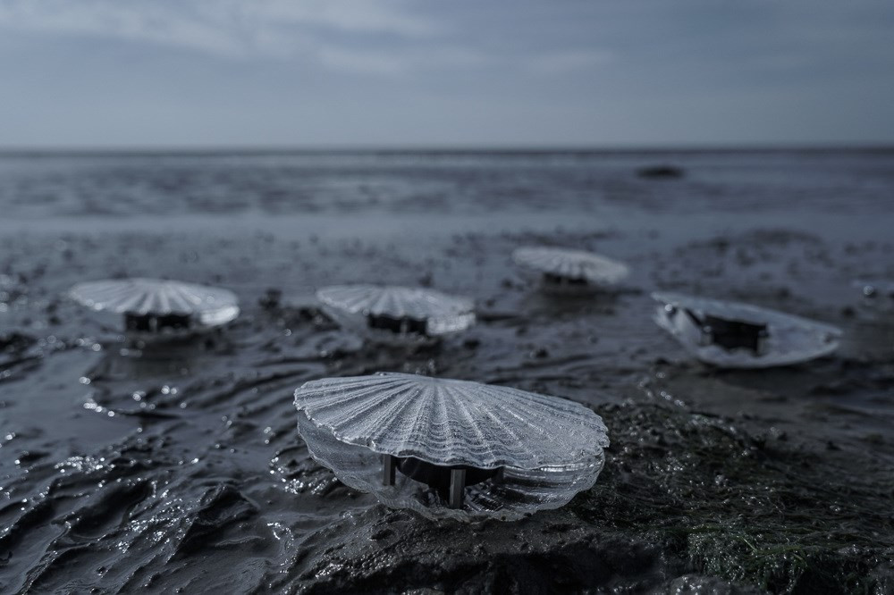 In nature, clams are detectors of pollutants; they serve as tiny filtration systems. Inspired by this natural phenomenon, Marco created a kinetic sound installation triggered by water quality. Real-time data is streamed by a sensor and converted into an audio signal. The audio signal generates a live evolving soundscape which initiates the opening and closing movements of the Clam sculptures. Sound and motion unite to create an experience that allows the audience to see and hear the water quality in real time. The Clams sculptures are made from recycled industrial plastic waste. The artwork intends to raise awareness about water and plastic pollution.