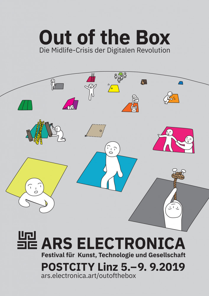 The Ars Electronica Festival 2019 will be held from Thursday, September 5, to Monday, September 9, 2019 at several locations in Linz – first and foremost at the POSTCITY close to the Linz Central Station. In 2019, Ars Electronica celebrates its 40th anniversary and, as always, looks to the future. In keeping with its title “Out of the Box – the Midlife Crisis of the Digital Revolution,” the festival embarks on an expedition to artistically and scientifically survey our modern world and its techno-economic influences, asking questions about our future prospects and options for action.