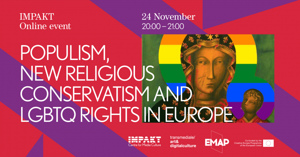 Next week Wednesday 24 November, 20:00 IMPAKT.nl i.c.w. transmediale, will host an online conversation Populism, New Religious Conservatism and LGBTQ rights in Europe. With EMAP/EMARE resident artist Liliana Zeic, artist Szabolcs KissPál and researcher Małgorzata Miśniakiewicz. Moderated by Lisa Peters.