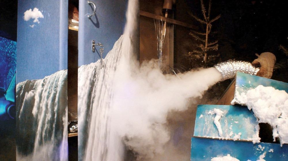 In Berlin-based Isabell Spengler’s installation we are presented with two panoramic depictions of the iconic Niagara Falls—one that was created onsite and the other, a three-dimensional model, constructed in her Berlin studio having never visited the Falls. This second model is not a geographically accurate replica but rather an embodiment of the artist’s preconceived notions of the place—a distillation of ideas, images and dreams. Alongside these fictional falls, we are also confronted with the same 360-degree pan of the actual cataract and surrounding landscape, shot on location during her two-month residency in Toronto. The adjacent screens play with concepts of anticipation, imagination, time and place.