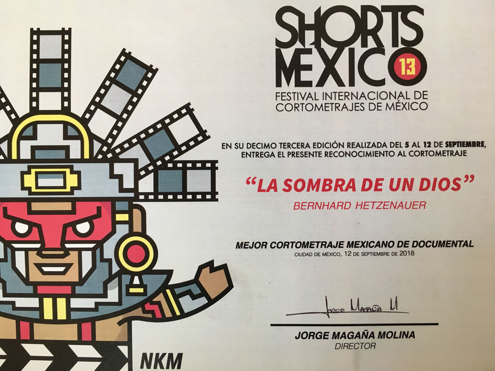 The film La sombra de un dios by EMARE MEX stipend Bernhard Hetzenauer was honoured as „Best Mexican Short Documentary“ at Shorts Mexico – Mexico City Int. Short Film Festival 2018.