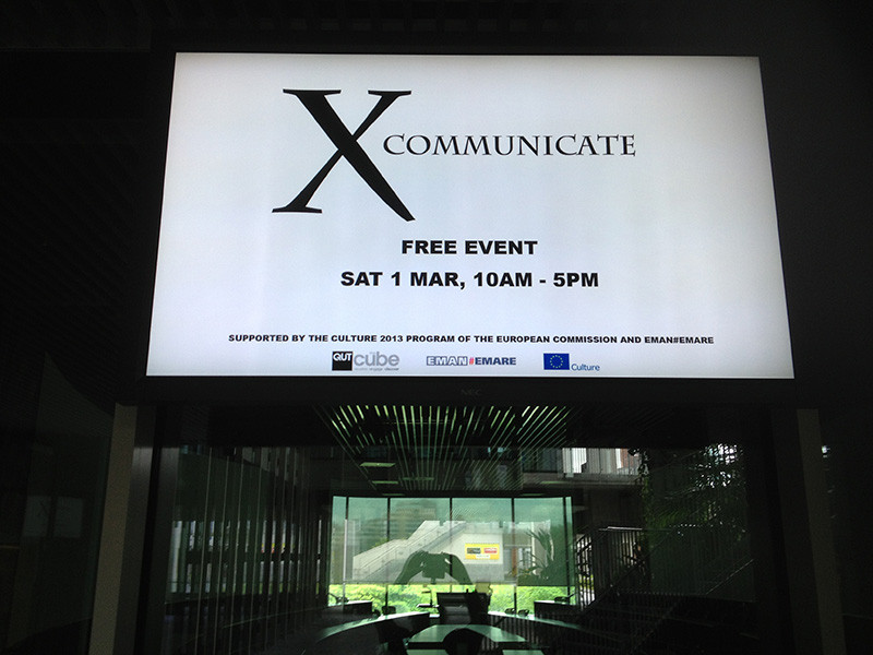 Xcommunicate: EMARE (European Media Artists in Residence Exchange) Symposium provided a line-up of some of the most recognised Australian media artists and organisations. An opportunity for people to meet, make new connections and create new collaborative partnerships. The symposium was based on the PechaKucha format – a dynamic fast-paced presentation and networking experience. Xcommunicate included a key note address by Prof. Mike Stubbs (CEO of FACT, Liverpool) and presentations with creative practitioners, festival organisations, institutional directors and curators giving a five minute flash presentation on their work, spaces, programs and projects.