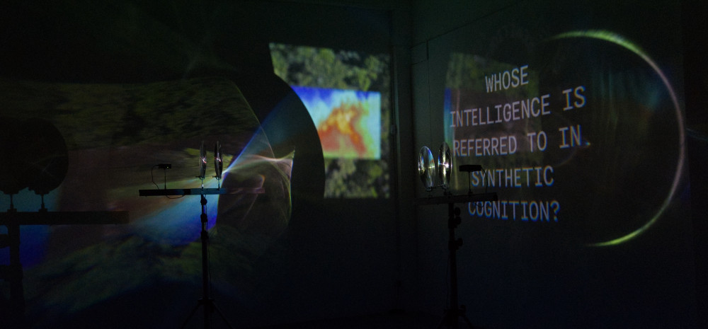 Rosemary Lee: The installation sets up a relationship so that the video projections are distorted by the apparatuses. This project explores how we can think about AI differently through combining aesthetic experience with conceptual inquiry.