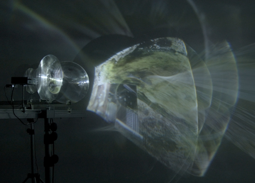 In this work, a flood of visual information is fed through apparatuses that enlarge and distort what viewers see within the surrounding space. At various times, one can make out glimpses of coherent images: faces from biometric imaging databases; ordinary objects and animals; and aerial surveillance footage — the likes of which are used to train many computer vision systems. These are combined with images situating artificial intelligence, historically and materially, drawing from the prehistory of artificial intelligence — when supercomputers were needed to process even simple inputs and long before the idea of computers creating realistic, photographic images became commonplace — as well as documenting its resource-intensiveness: devouring not only data but also energy and precious minerals.