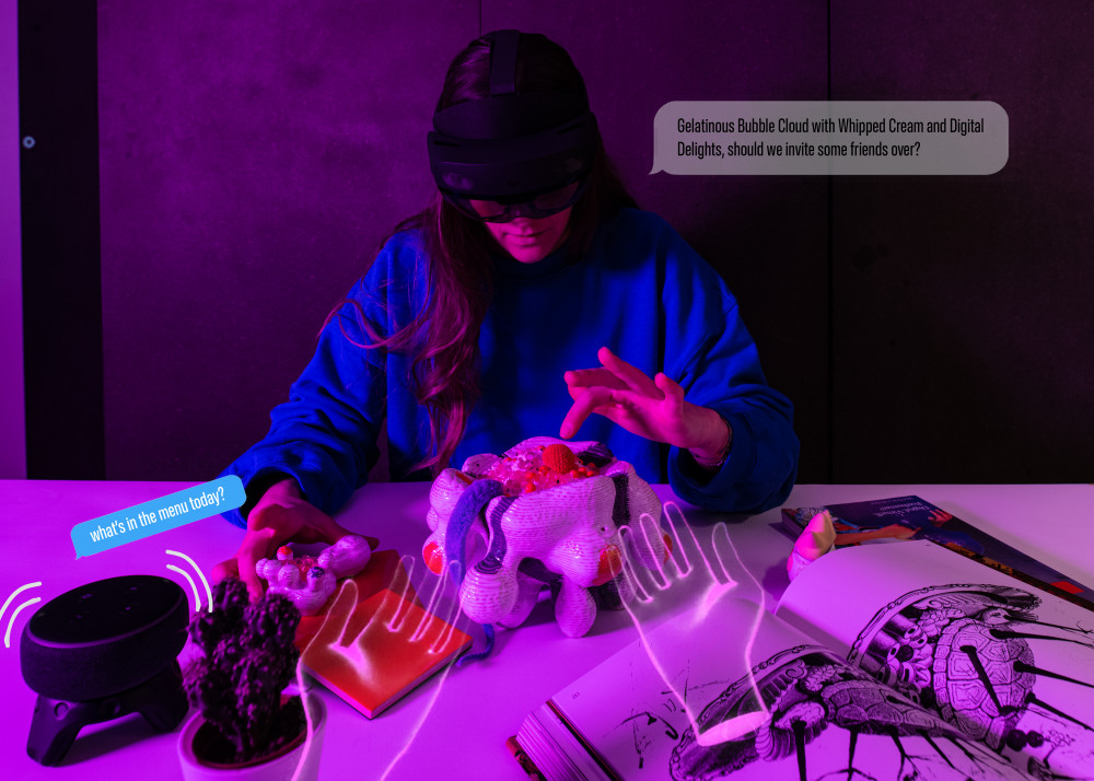 Be My Guest! is a collective mixed-reality dinner event hosted by AI. The installation rethinks an age-old gathering ritual: a dinner with friends, where AI, named Parasite, becomes the host and co-creator of the physical stage. The collective experience transforms the private setting of home into a public domain, mirroring our current condition of dwelling in multiple realities due to our constant connection through digital devices, investigating how we inhabit and interact within networked virtual spaces, and how we foster parasitic relationships with AI systems, redefining the fabric of communal gathering in the digital age. What happens when species meet?