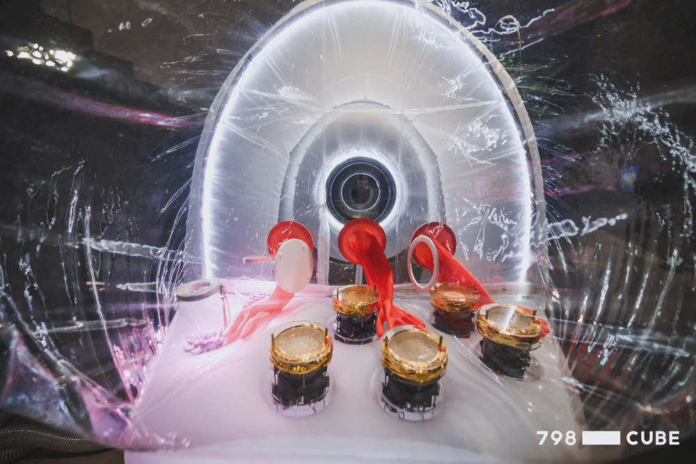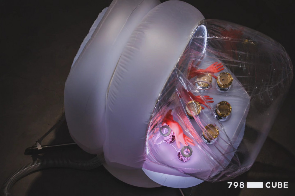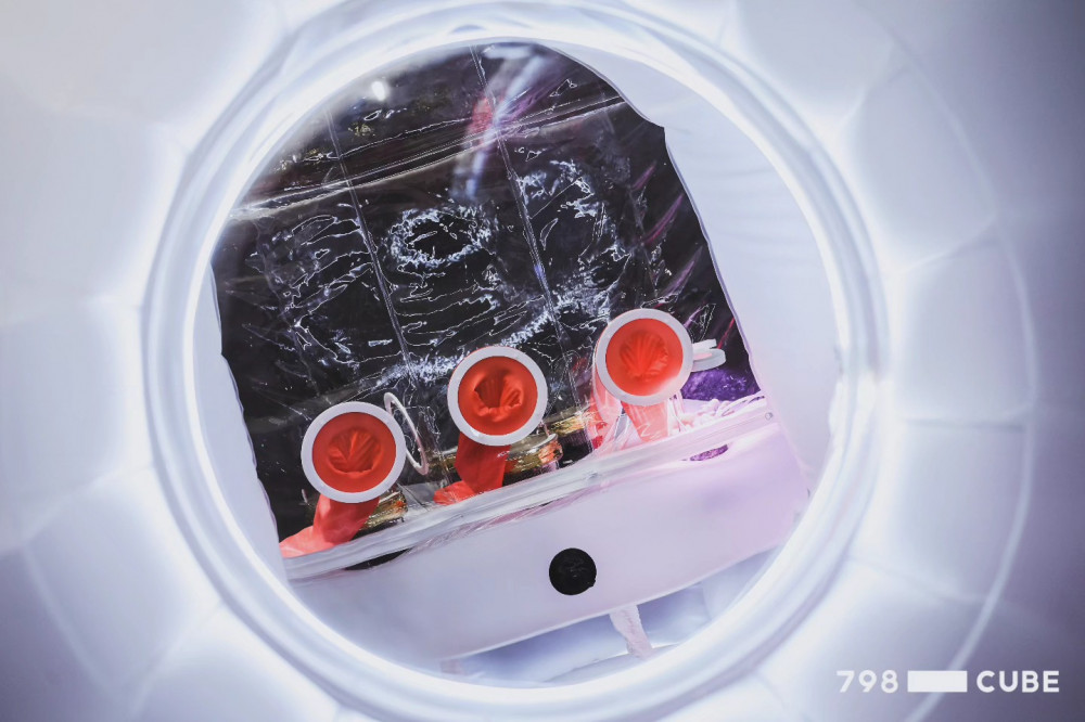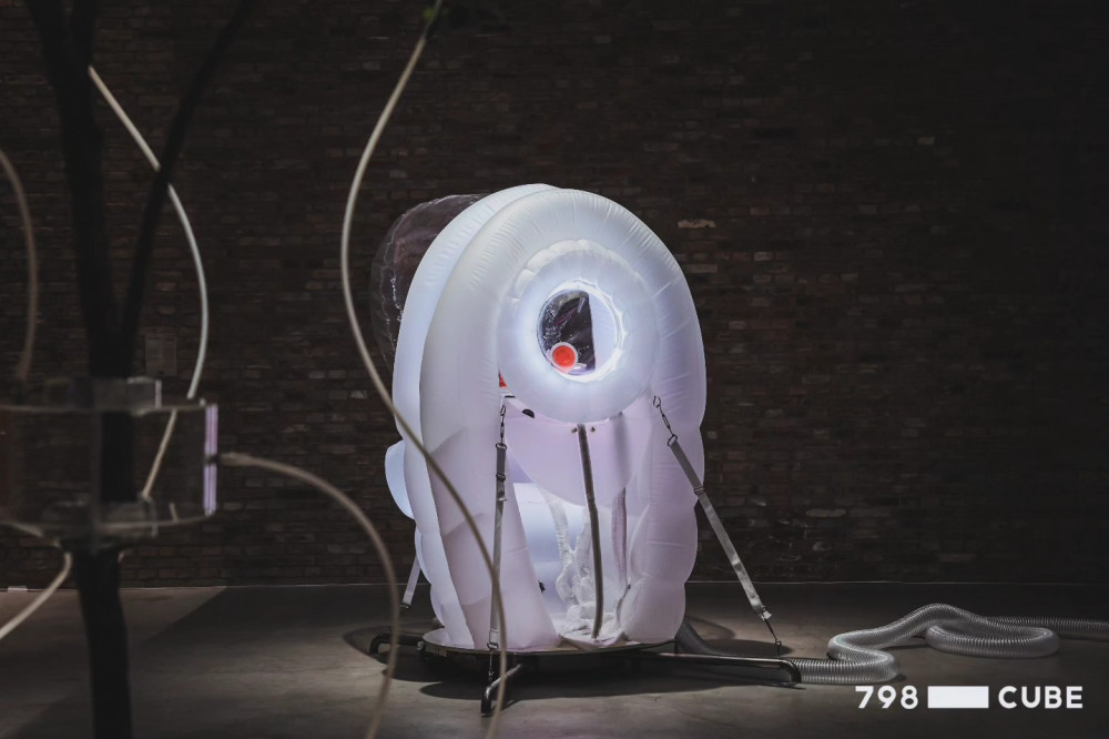 Dorotea Dolinšek's artistic investigation of life in radical conditions of outer space as well as of deeply wounded planet Earth, continues by assembling a space-suit as a complete life support system. This wearable, heavy technologized capsule, is understood as a human's ultimate interiorisation as well as isolation from the environment. However, what makes human presence in outer space possible is the symbiotic coexistence with the non-human, one's personal microbiome. This vessel of organisma, interconnected with the human body is challenged by radical outer space conditions to which the somatic body shows more physiological plasticity than its microbiome. Relative sterility inside this wearable architecture of a space suit is one of the factors that compromise balance among the silent non-human cast of space travelers, leading to dysbiosis. The artistic investigation will aim to enhance symbiotic alliances between humans, technology, and non-human living beings, that will collaborate to evolve one's living environment, forming a Biosymbiotic Exoskeleton. While such understanding addresses interplanetarity through coexistence, it also leads us to cultivate the capacity to respond to deep ecological urgencies on planet Earth.