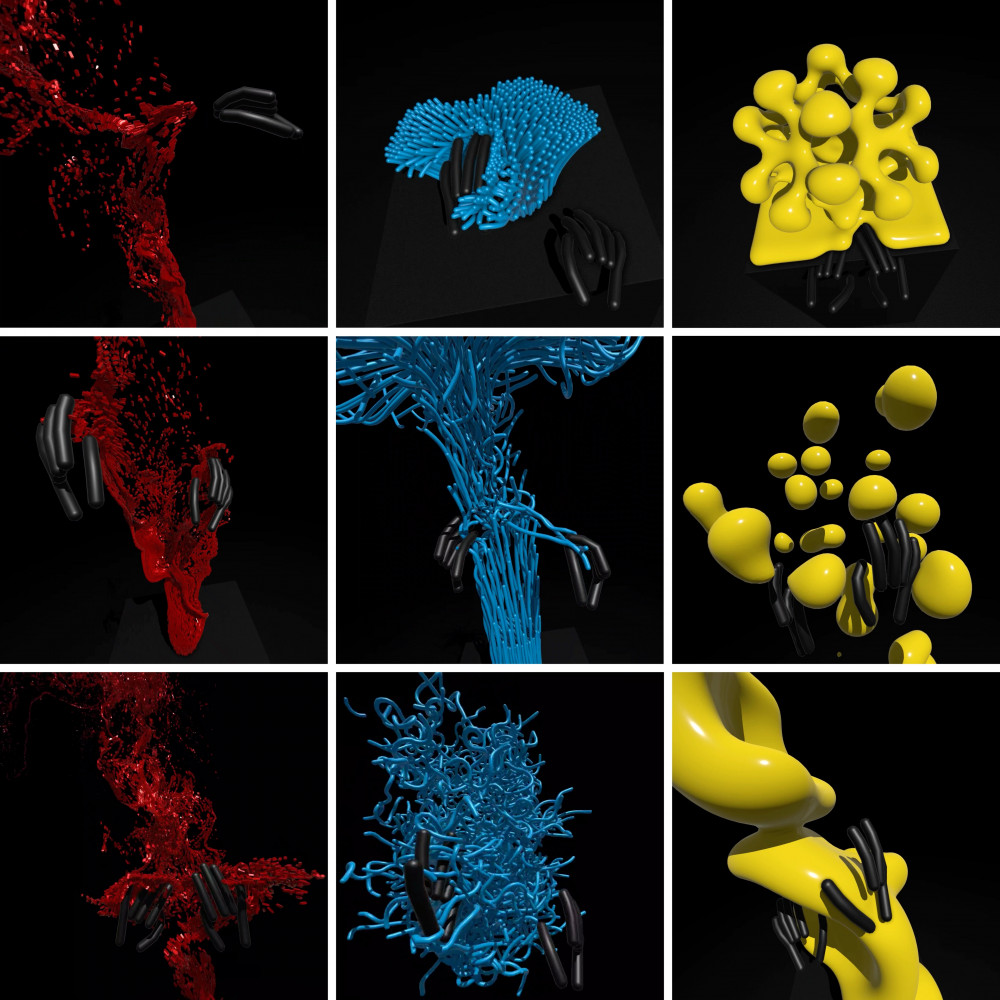 In this sensory experience, you are invited to explore a series of algorithmic natural phenomena with your hands. Each instance exhibits a perplexing metamorphosis and is accompanied by a musical piece by Latvian composer Anna Fišere.
