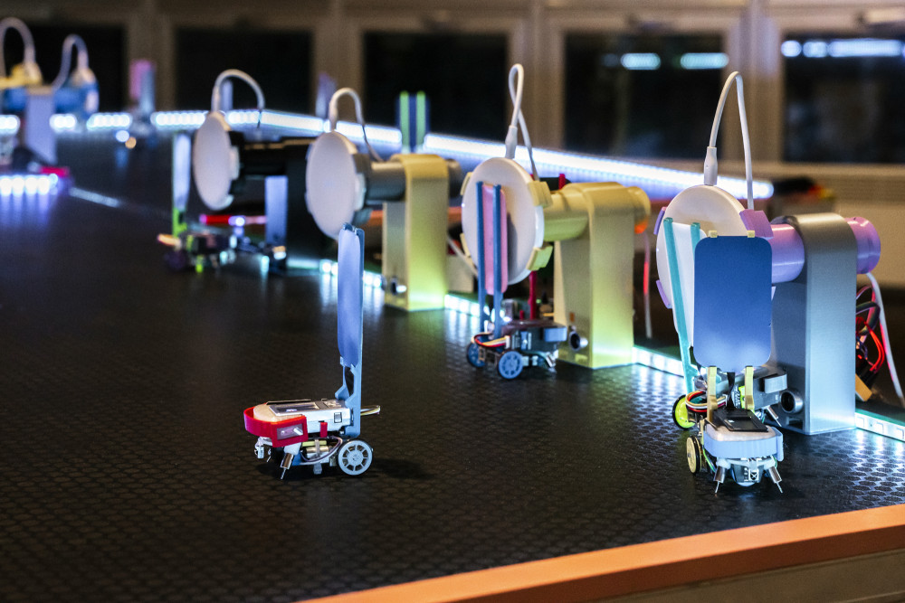 For the Kazokutchi project, the initial interest was in individuals in a swarm. I have a swarm robot project called Lasermice, which emerges dynamic movement from collective behaviour, but each robot is designed the same. Within the project I gave a workshop, that brought some change. It was about renting one robot to one child, they decorated and named it, also gave it a personality. And this gave the swarm another layer. When Akihiro, Takemi and I were discussing ways to use NFT as a medium, we came up with this idea of combining a physical robot with a digital life that can be named. This was the starting point of Kazokutchi.