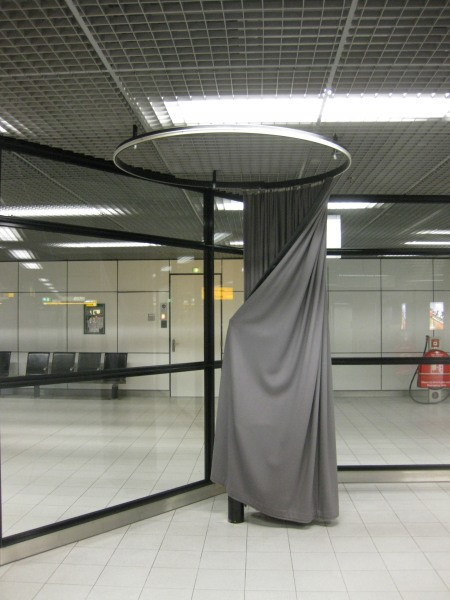 The randomness of the movement of sound between the speakers makes it difficult to predict the source of the tune consistently. This lack of certainty leads to a sense of disorientation for the auditor who walks through the space: to a sense of disjunctive space, in which s/he has to move between zones comprised of varying levels of clarity and awareness, vagueness and responsiveness. The previously confined and clearly apprehensible exhibition space now becomes decentred and destabilized. Whistling occupies a peculiar position somewhere between language and musical expression. It is a kind of vocal utterance that can be used by individuals to indicate and delimit their personal space. It enhances the whistler’s presence and announces his appearance. The individual who moves through public space and is confronted with the presence and erratic behaviour of other individuals is constantly preoccupied with demarking and protecting his own personal sphere. The whistling voice becomes an extension of the body.Raymond Taudin Chabot transposes this act of demarcation from the public sphere of endless human interaction into the semi-privacy of the exhibition space, in which individuals move and behave in a different way. Exhibition visitors generally have a heightened awareness of their own bodies and movements in relation to the objects (or in this case, to the sound) that surround/s them within an otherwise void-like space. The whistling sound becomes a confusing intrusion into the visitors’ own personal spheres. The act of trying to summon up a melody from memory is often performed in a partly subconscious state of mind. Consciousness shifts between attentiveness and reverie, and the melody keeps coming to mind in a repetitious and persistent way. The singer or the whistler then recapitulates the fragments of the song that ricochet in his mind and reproduces these musical scores according to his own memory or interpretation.