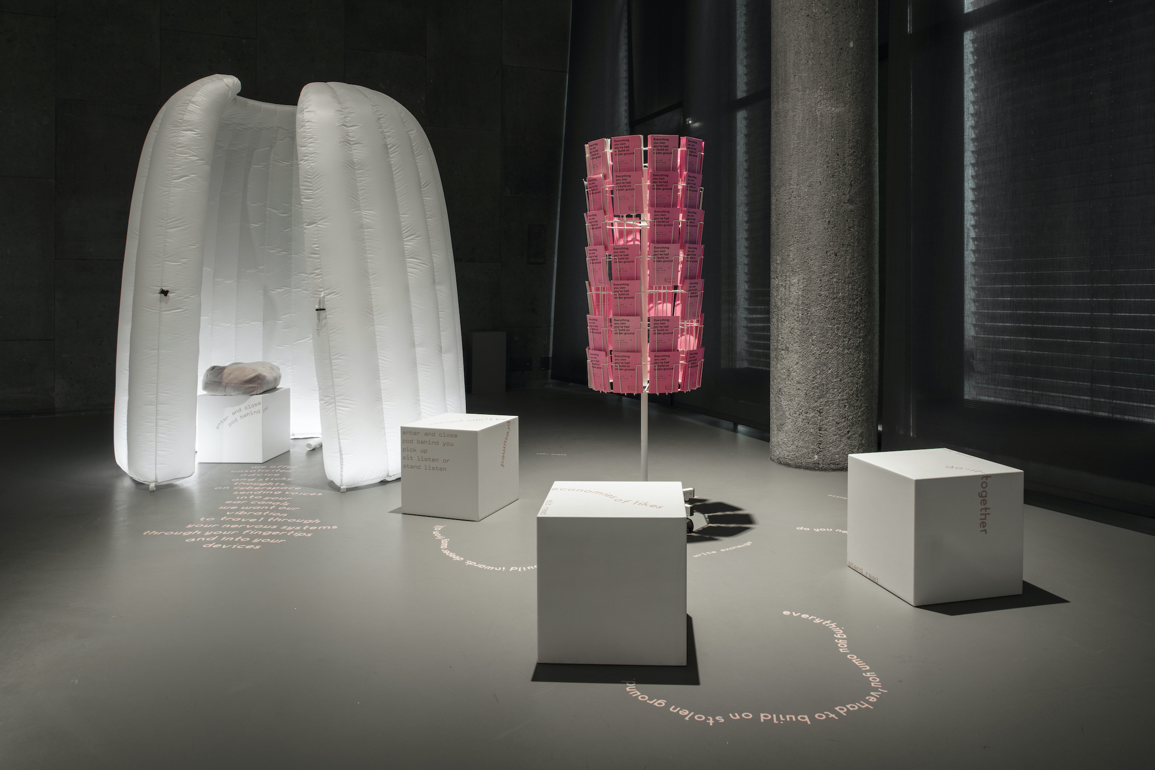 The project welcome, by Aay Liparoto, FACT’s 2019 EMAP artist-in-residence, is a speculative choir piece housed within a ‘void pod’. In their work, Liparoto acknowledges our interdependence with technology for information, work, sex, entertainment, communication, socialising, banking, healthcare and the crossovers in between. What does this web of interdependence mean for queer feminist bodies which rely more heavily on DIY information exchange? Through the ‘void pod’, the project invites us to question the power and politics of the spaces we engage in online, our own and the behaviour of others within them. The ‘void pod’s’ new sound piece is created through workshops with HOT BODIES – CHOIR, a queer, LGBTQIA+ and feminist choir based in Brussels. Cocooned in light and sound, the singers’ voices invite us to reflect on these online spaces and the behaviours within.