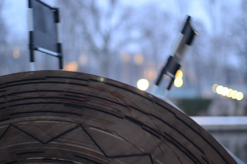 Nostalgia for a Myth is a kinetic sound sculpture designed to be set on the edge of a river. It is a combination of a water mill and a variation of a Polyphon – an automatic music box disc produced in Leipzig in the late 19th century. The flow of the river determines the rate at which it performs popular nostalgic songs, while also creating its own light show. This is partly rooted in Robin Moody’s own nostalgic interest in clever mechanical devices from the past, but even more so in current popular movements of nostalgia for a simpler time that did not actually happen.