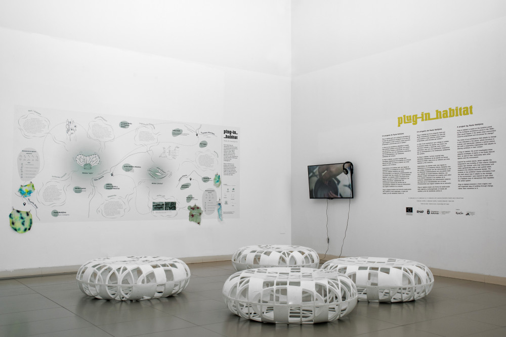 Plug-in Habitat is named after the famous ‘Plug-in City’ of architectural neofuturistic group Archigram. Its framework inspires Paula Nishijima’s collaboration with architect and artist Marlén López, whose research focuses on the application of biomimicry to architecture and engineering through new technologies of digital fabrication.