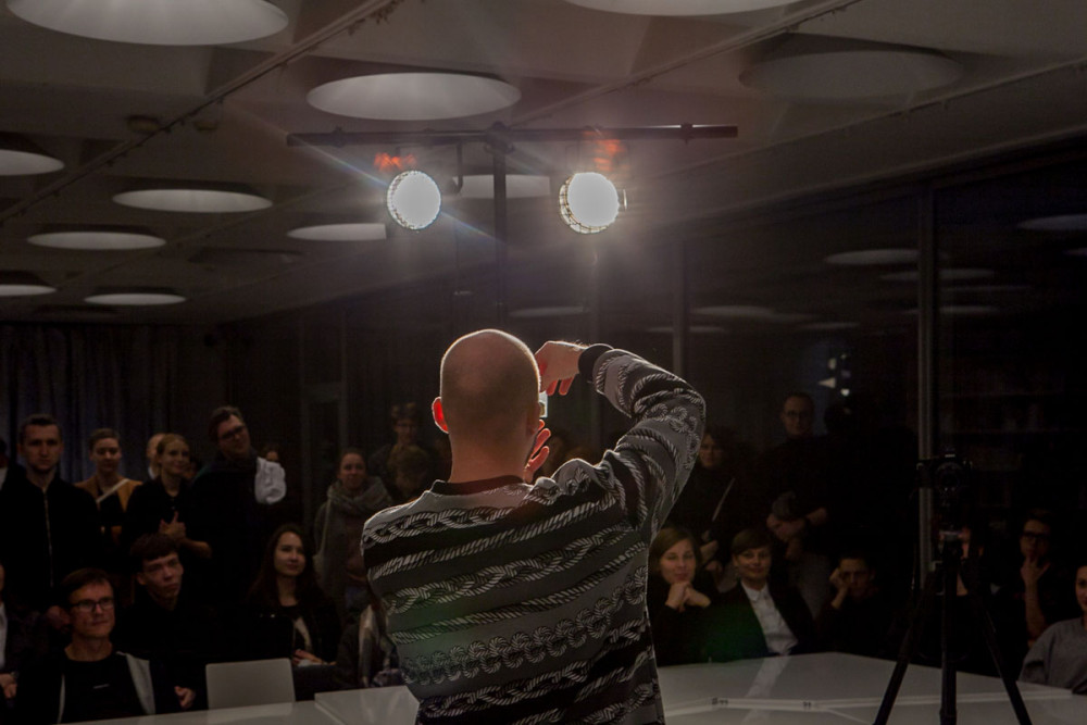 Artist Robertas Narkus introduces an investment scheme, which will turn your negative emotions into über-financial resources. The project is a distorted elevator pitch, one man spectacle, a lecture with stand-up, and lecture elements dealing with notions of attention economies, technology and investments. Networking with start-up communities in Liverpool, London and Warsaw, this project explores the landscape where entrepreneurial desires, hopes, failures, creativity, and ambitions meet. Using a blend of performance, video, and technology-based art, Narkus challenges audiences to question the accepted virtues and values of technology start-up culture.