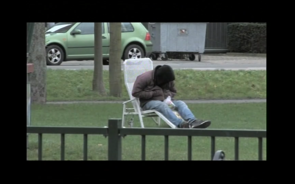 An unfamiliar apartment, some skater kids in the park, as well as people and situations randomly observed on the street form the background in front of which Remote takes place. The observing and the cinematic or photographic recording of persons give rise to a personal, essay-like approach to an unknown city. Unfamiliar moments and those of exciting confrontation with new surroundings, yet also feelings of self-doubt and loneliness are made apparent through the interspersed comments of a speaker. As an observer of the video, one soon believes to be following the thoughts of the artist filming, although doubts about the direct authenticity of spoken words are appropriate.