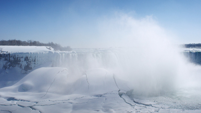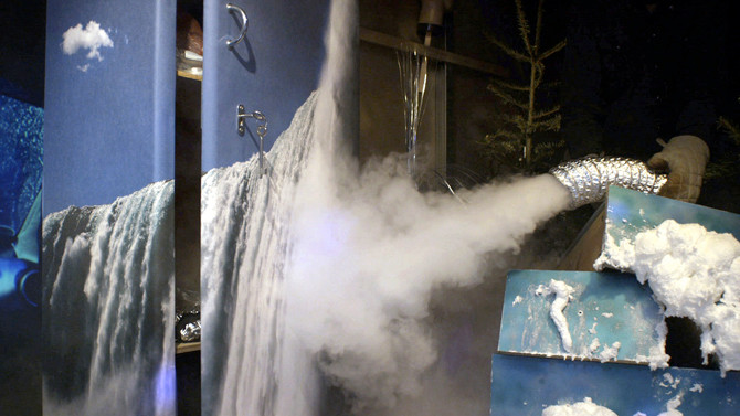 In Two Days at the Falls, Isabell Spengler juxtaposes two identical 360-degree pan shots of the iconic Niagara Falls in a double projection. One of the shots was filmed when Spengler visited the falls for the first time and found them partially frozen. The other was made before her trip in a three-dimensional model that Spengler built in her studio and that represents a distillation of all the ideas and ascriptions from illustrations, texts, interviews, films and digital replicas that have contributed to her personal image of the place. In her juxtaposition of video images of the fictive and real Niagara Falls, Isabell Spengler examines the interaction between reality and imagination, between popular culture and private perception and between the monumental and the everyday in the context of the present ubiquity of media technologies.