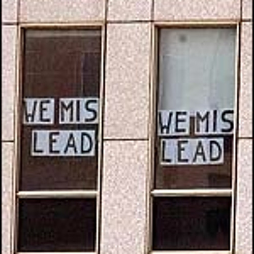 A man in Amsterdam took the most prestigious business building (Philips) hostage, forcing people to letter the windows with the words WE MISLEAD. Media coverage claims that the man is frustrated over the impact of widescreen tv on his film enjoyment - black bars.